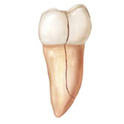 A split tooth is often the result of the long term progression of a cracked tooth. The split tooth is identified by a crack with distinct segments that can be separated. A split tooth can never be saved intact. The position and extent of the crack, however, will determine whether any portion of the tooth can be saved. In rare instances, endodontic treatment and a crown or other restoration by your dentist may be used to save a portion of the tooth.